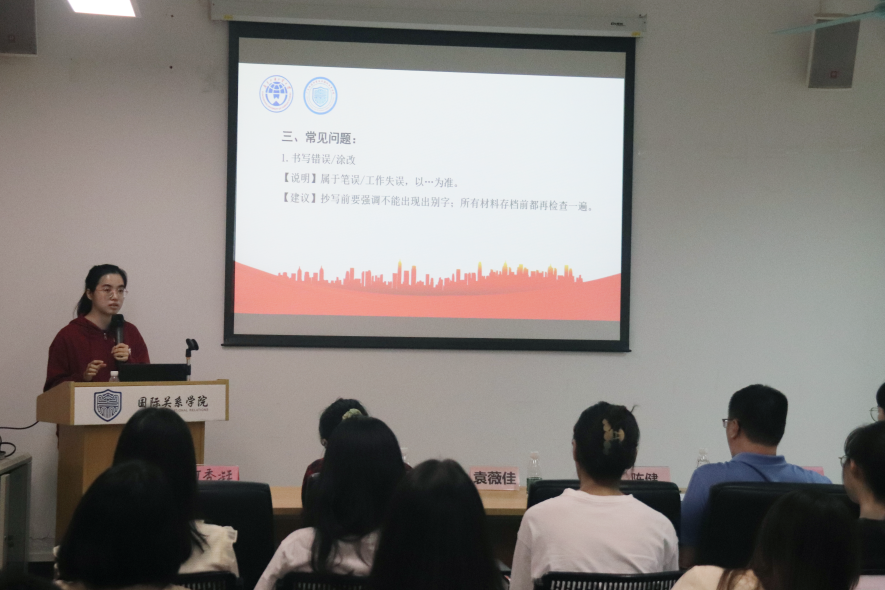学院前任党建负责人杨漫雪、前任支部书记薛曼丽、前任支部组织委员何香凝都以“先行者”的身份,分别进行了工作经验分享交流。她们从党员发展、情况说明、支部工作等角度出发,以实际案例为切入点,对创新院党课形式、规范材料书写、制定积极分子日常表现反馈机制、预备党员转正流程梳理等工作给出了详尽的指导,并希望新一届同学能够再接再厉,使党建工作和党建精神在一代代的传承中愈加闪耀。