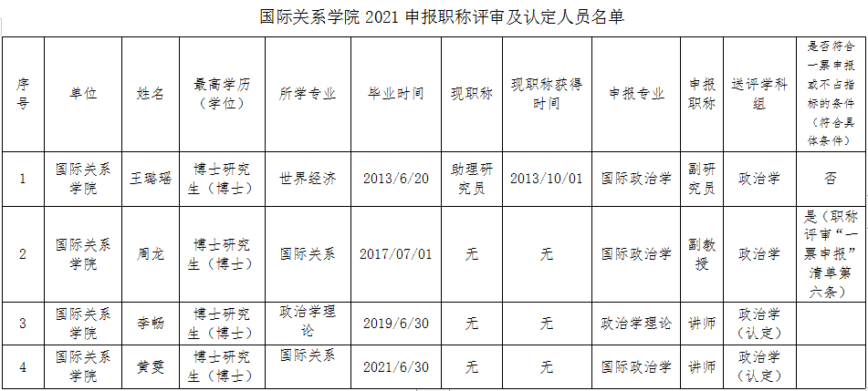 附:1、国际关系学院2021申报职称评审及认定人员名单