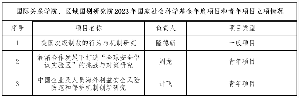 2023年,学院和区域国别研究院获国家社会科学基金项目立项3项