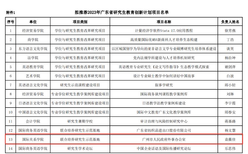 2023年5月,广州市外事办获评省级研究生联合培养示范基地