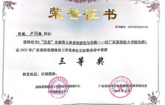 2023年4月,学院2篇思政论文获广东高校学生工作案例一等奖、三等奖