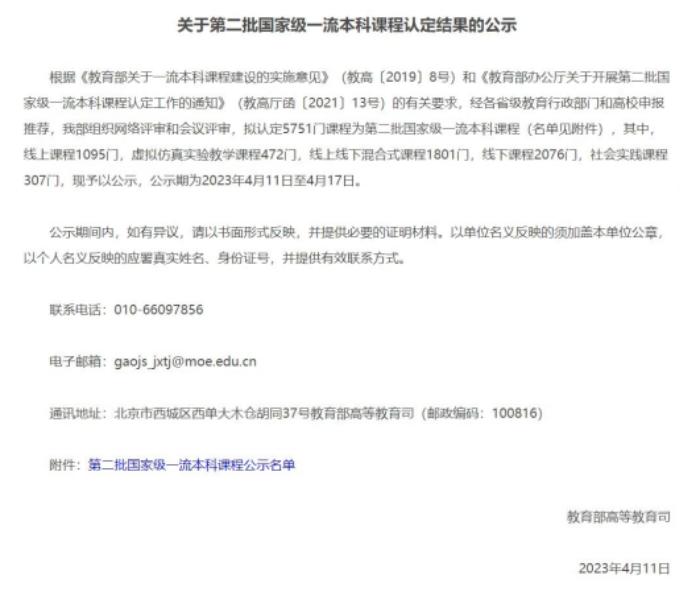 荣获教育部“第二批国家级一流本科课程”认定