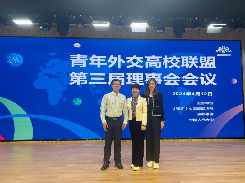 本网讯 4月12日,青年外交高校联盟第三届理事会会议在中国人民大学举办。共青团中央书记处常务书记徐晓,北京大学党委副书记、副校长、联盟第二届理事会理事长宁琦,中国人民大学党委常委、副校长、联盟第三届理事会理事长王易出席会议并致辞。北大、清华、北外等联盟10所创始成员高校和12所新加入高校的理事、导师、专家和青年代表等80余人参加。我校团委书记刘郎、我院党委书记袁薇佳当选为理事,我院外交学系主任周龙副教授入选专家团。